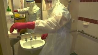 A step by instructional video on the best practices for cleaning discharge isolation patient room.